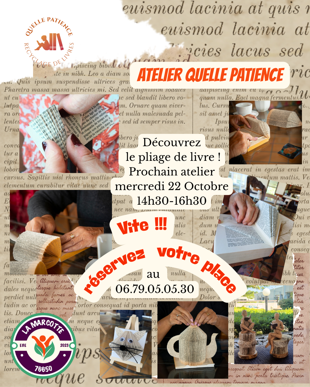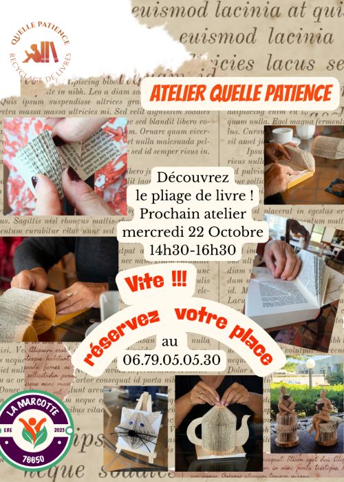 22 Octobre- Alelier pliage de Livre avec "Quelle Patience"